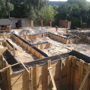 Для двухэтажного дома на площади 220 м² идеальным вариантом является ленточный или монолитный фундамент. Он обеспечивает надежное основание и исключает деформации из-за неравномерной нагрузки или подвижек грунта. В зависимости от типа грунта и климатических условий проектировщики рекомендуют выбирать подходящий тип фундамента и глубину заложения.