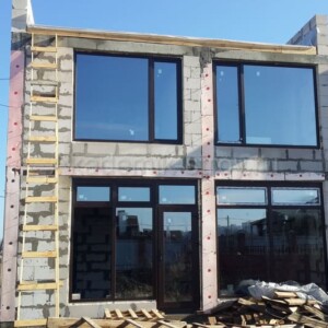 - Монтаж перекрытий и лестницы, установка окон и дверей.