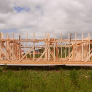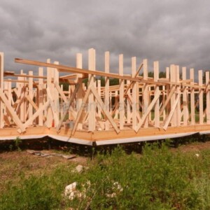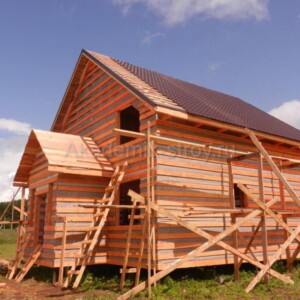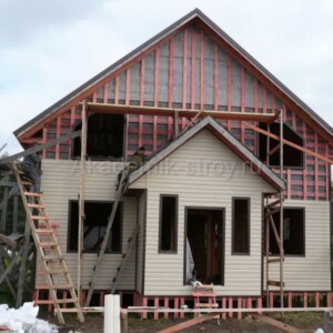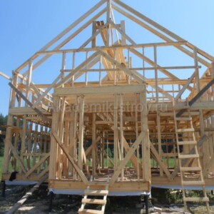 Устанавливается стропильная система и кровельное покрытие. Качественная крыша обеспечит надежную защиту дома от осадков и температурных перепадов.