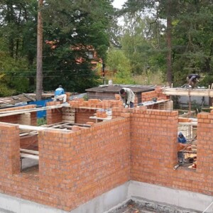Для крупного двухэтажного дома необходим серьезный фундамент, способный выдержать значительные нагрузки. В зависимости от типа почвы и климатических условий применяются ленточные, плитные или свайно-ростверковые основания. Конструкции стен могут быть выполнены из кирпича, газобетона, монолитного бетона или клееного бруса — выбор зависит от бюджета и предпочтений.