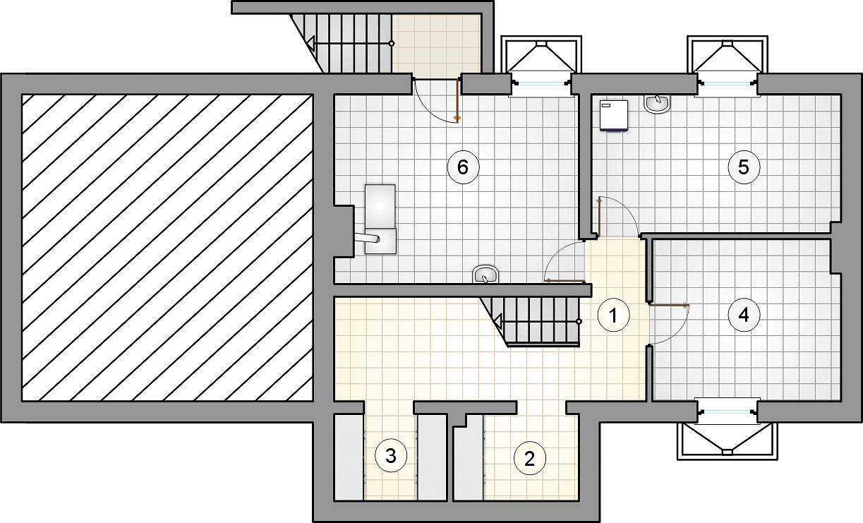- Два санузла — один на первом этаже и второй на втором, для удобства и приватности;