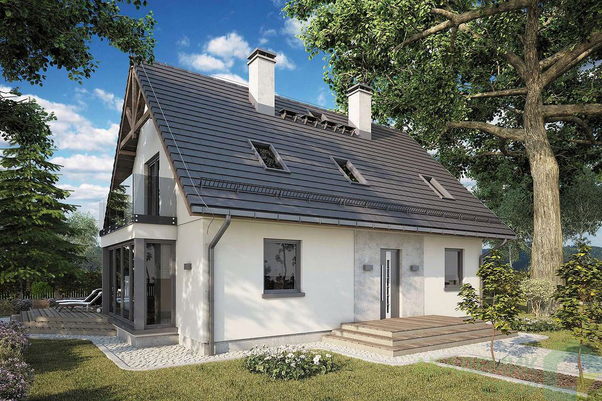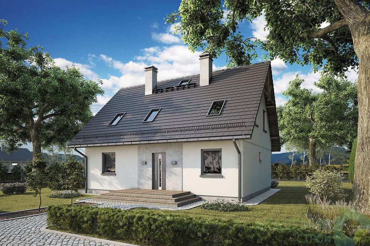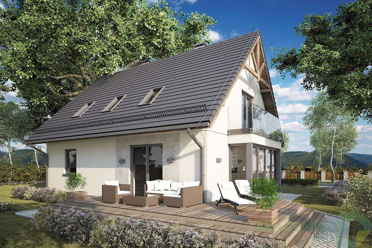 Тип крыши — двускатный, углом наклона 45°, что обеспечивает эффективный сход воды и снега в зимний период. Именно такой дизайн крыши помогает избежать заболеваний, вызванных протеканием, а также снижает риск накопления снега, который может повредить конструкцию.