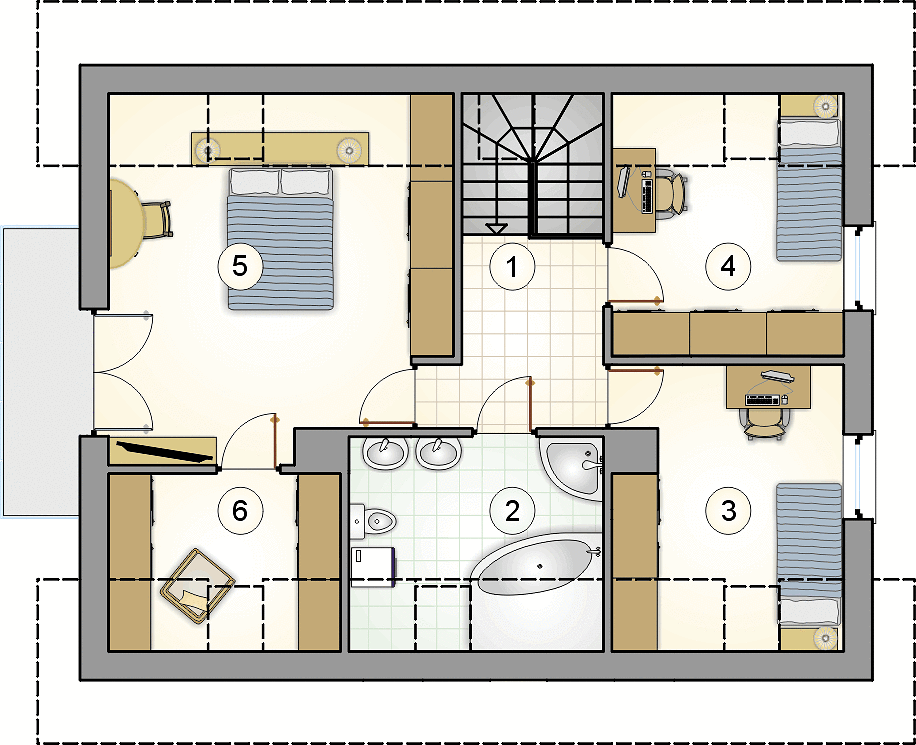- Четыре спальни. Дом идеально подойдет для семьи из 3-5 человек или даже для тех, кто часто принимает гостей.
