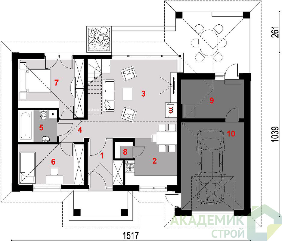 Позднее, при желании, владельцы дома смогут обустроить прилегающую территорию, установив дополнительные архитектурные элементы, такие как навесы, беседки или небольшие хозяйственные строения, не нарушая при этом гармонию и удобство основного дома.
