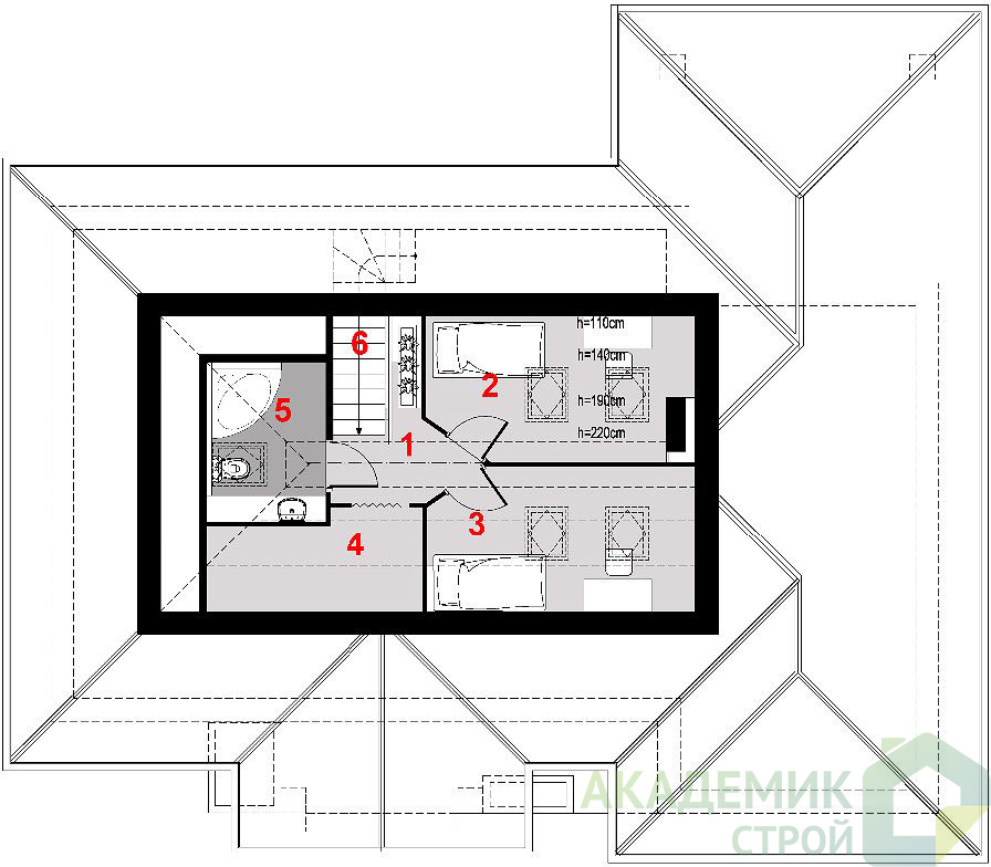 | Высота дома | 6,05 м | От уровня земли до конька крыши |
