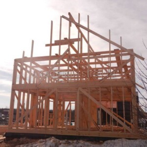 Каркас дома может быть выполнен из железобетонных конструкций, деревянных балок или металлического профиля в зависимости от выбранной технологии. При этом необходимо учитывать параметры утепления, чтобы обеспечить комфортный микроклимат в жилище.