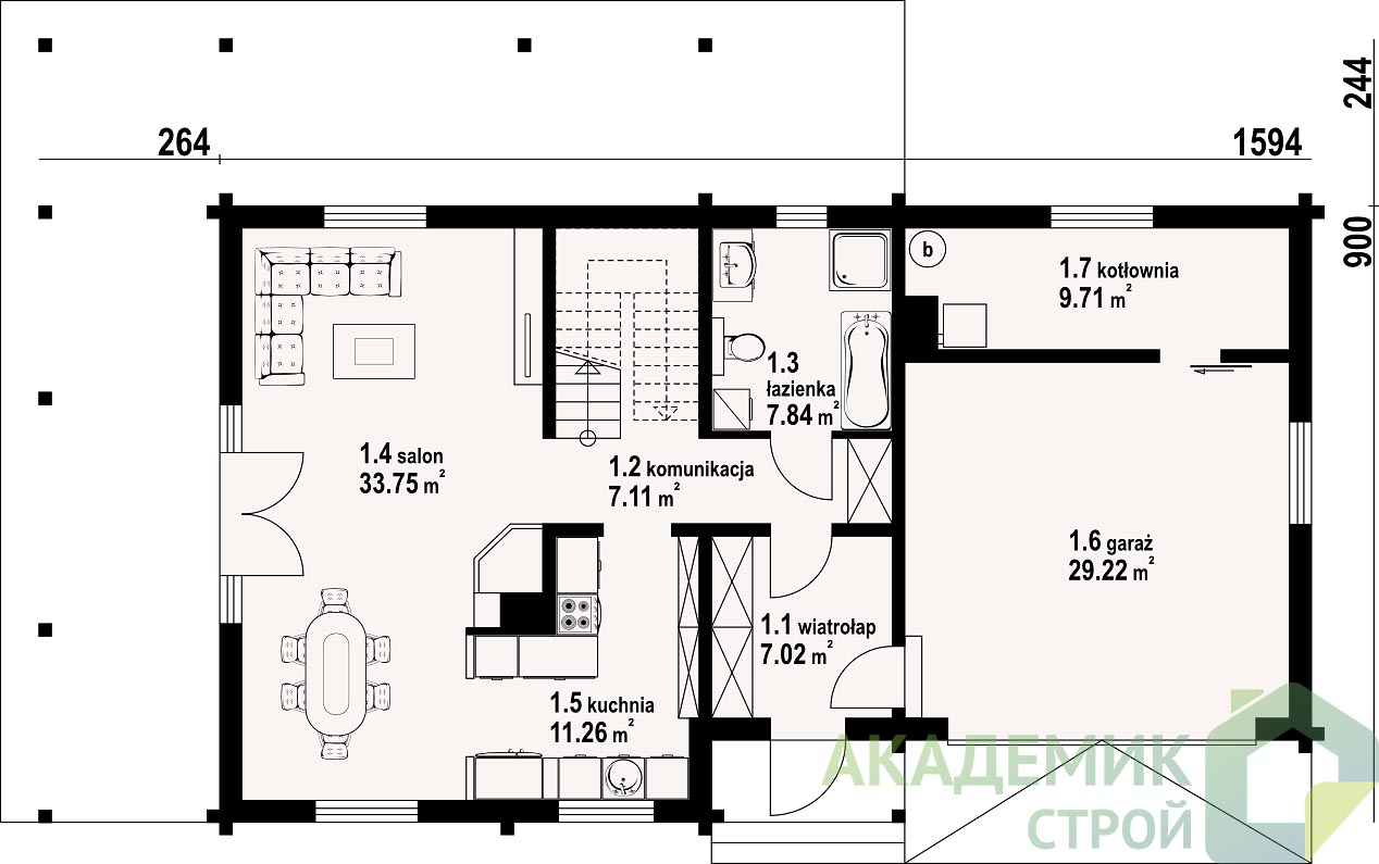 Компания "Академик Строй" предлагает этот проект по выгодной цене с полной поддержкой и возможностью адаптации по вашим желаниям. Позвоните +7 (980) 800-47-93 и получите подробные консультации, а также расчеты по стоимости и срокам строительства.