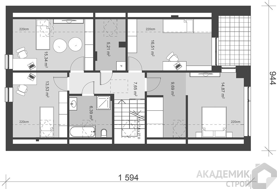 Размеры дома 9 на 16 метров – это классический прямоугольник устойчевой формы, который не только эстетичен, но и практичен. Благодаря двум этажам, проект предлагает значительное жилое пространство, компактно расположенное на ограниченном участке земли. Это позволяет избежать больших затрат на обустройство участка и оставляет достаточно места для ландшафтного дизайна и дополнительных построек.