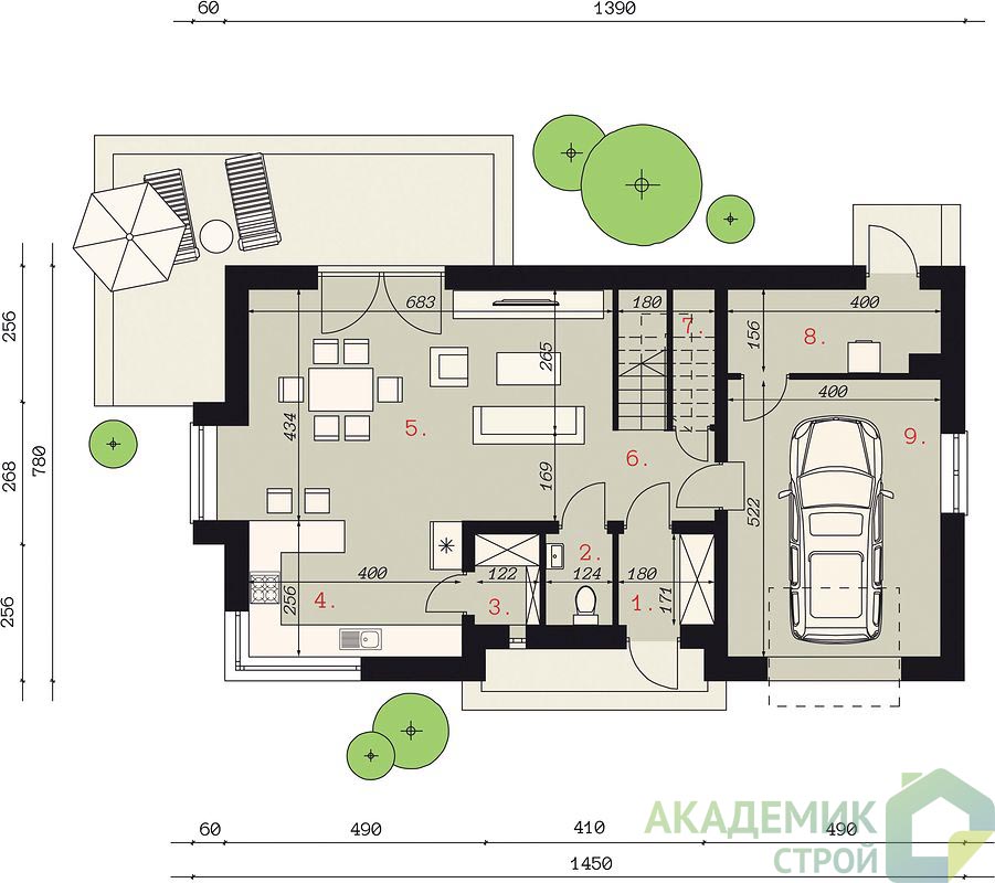 Проект 15х8, 117,3 м² (Академик Строй) |