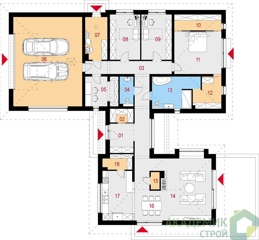 Но если вы выберете проект одноэтажного дома 22х23 от «Академик Строй», вам уже не придется переживать о многих нюансах — они учтены в комплексе.