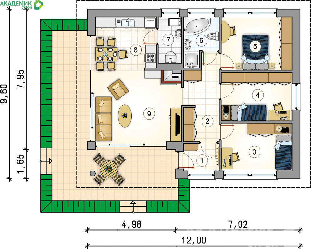 Основные характеристики одноэтажного дома 12х10 от "Академик Строй"