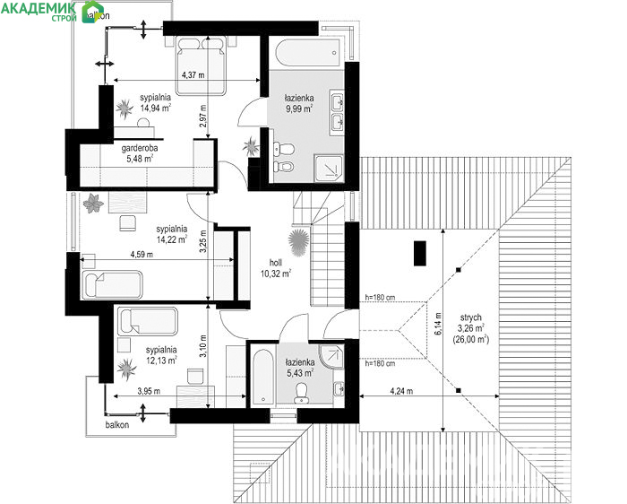 Основные параметры дома 15x14 от "Академик Строй"