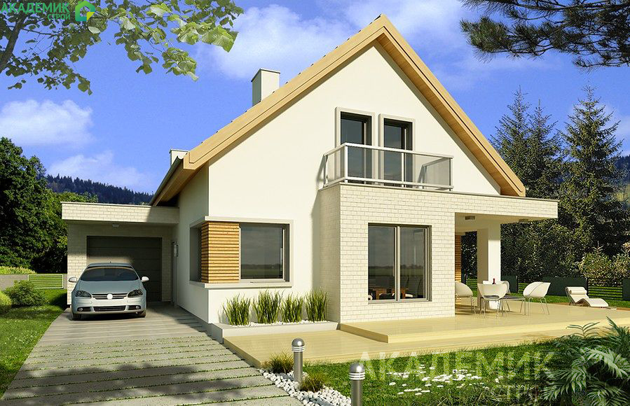 - Качественные архитектурные решения — двускатная крыша с оптимальным углом наклона, высота дома, позволяющая легко использовать все площади.