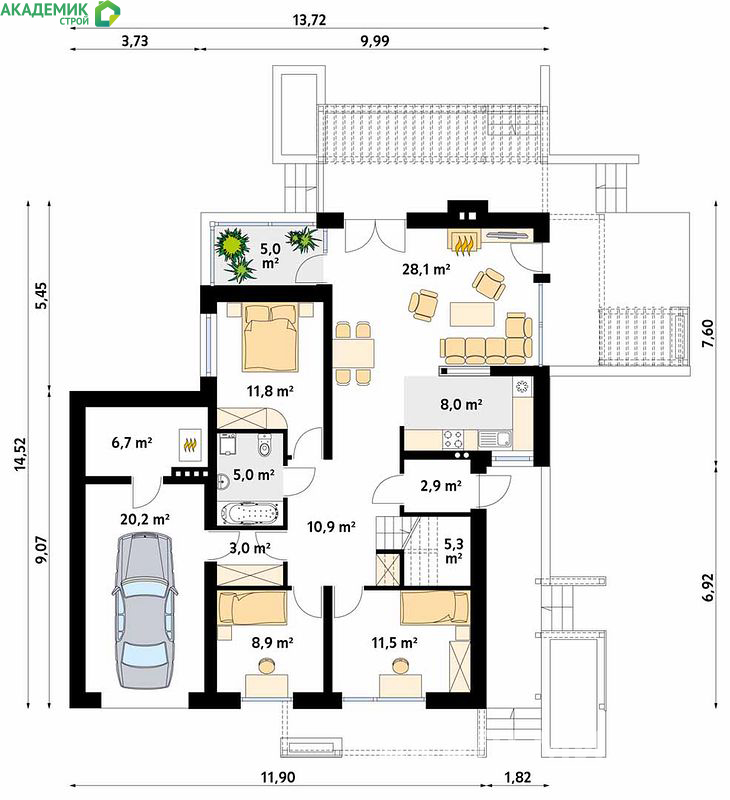 При заказе проекта дома важнейший вопрос — как правильно спланировать пространство внутри, чтобы каждой зоне было комфортно и функционально. Проект "Академик Строй" учитывает это на 100%.