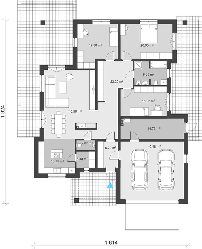 Одноэтажный дом — выбор многих семей, кто ценит удобство передвижения без лестниц, а также заботу о безопасности детей и пожилых членов семьи. Площадь в 205,81 м² позволяет разместить все необходимые жилые помещения и зоны отдыха, не испытывая дискомфорта от небольшого метража. При этом размеры дома 16 на 19 метров отлично вписываются в большинство типовых земельных участков в Московской области, что делает проект еще более доступным.