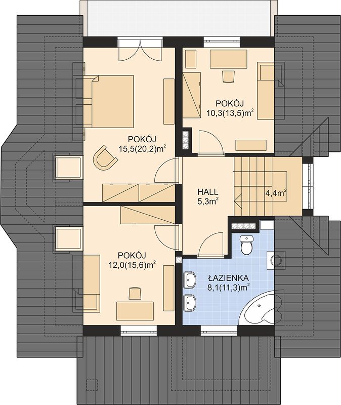 Количество спален — четыре штуки. Это уже хороший запас, чтобы удобно разместить всех членов семьи, а также предусмотреть гостевую, кабинет или детскую. Помимо спален в доме запроектировано 2 санузла, что значительно повышает комфорт и удобство проживания. Особенно утром, когда всем нужно подготовиться к дню.