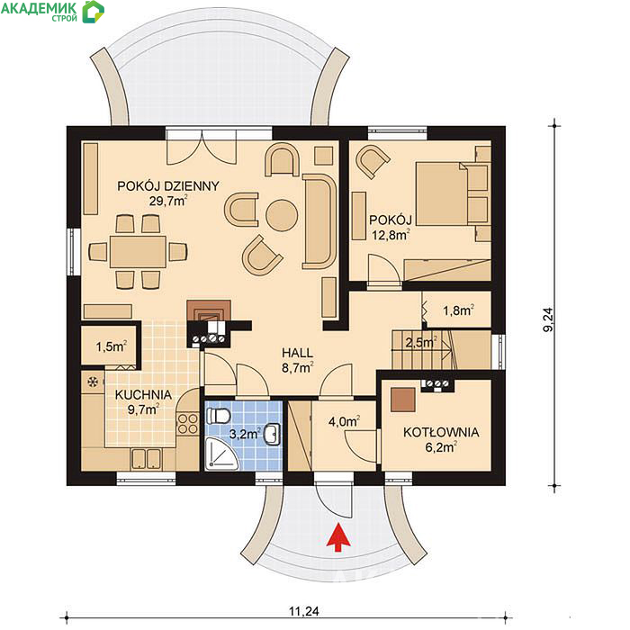| Размеры дома | 11 x 9 м | Габариты по наружным стенам |