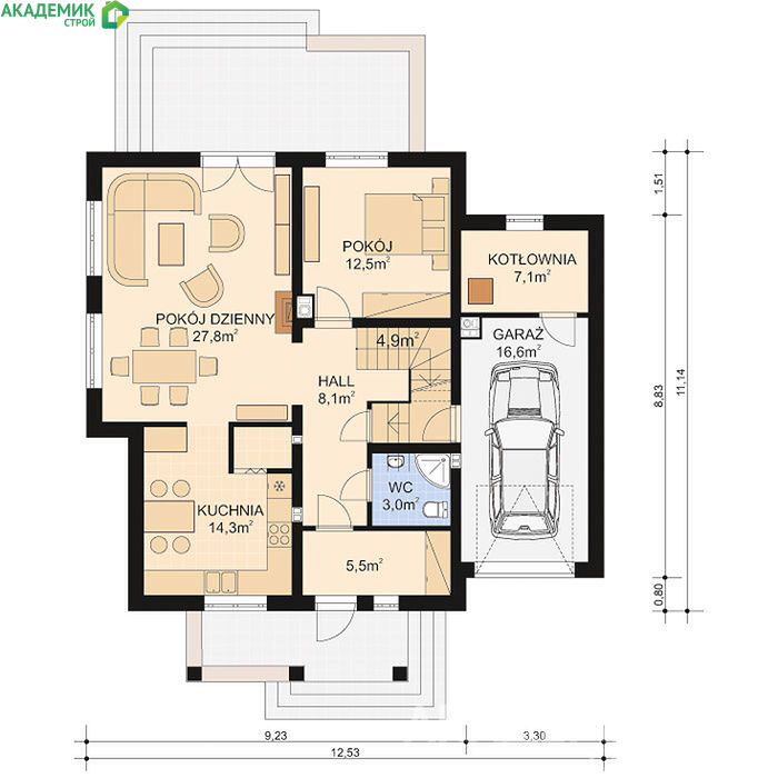 Проект с данными характеристиками обладает несколькими очевидными преимуществами как для строительства, так и для дальнейшей эксплуатации. Главным из них является органичное совмещение простора и компактности.