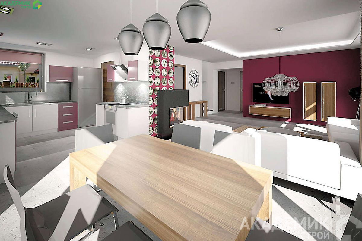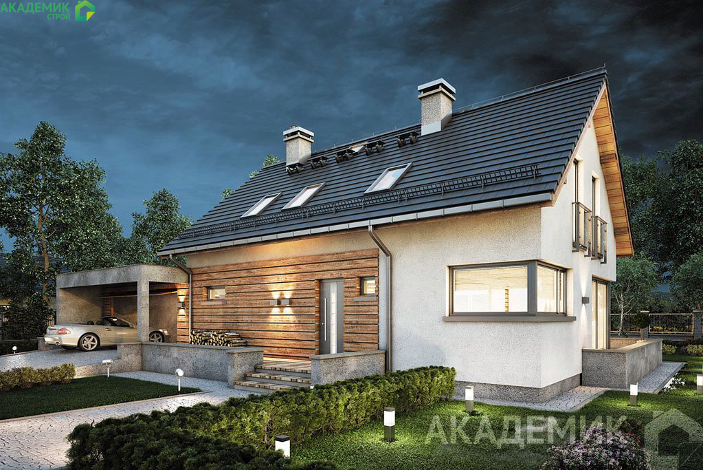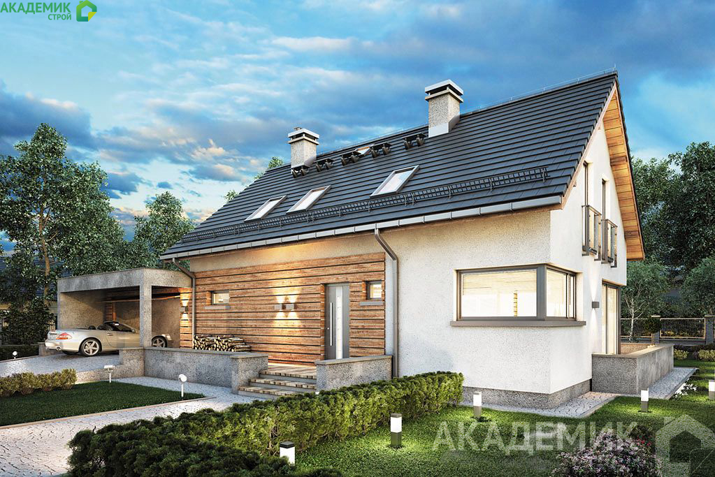Двускатная крыша также хорошо сочетается с различными архитектурными стилями – от классических до современных, что позволяет владельцам дома воплощать различные дизайнерские идеи в оформлении фасада. Архитектурная высота в 7,91 метра не делает дом слишком громоздким и хорошо вписывается в среднестатистическую жилую застройку.