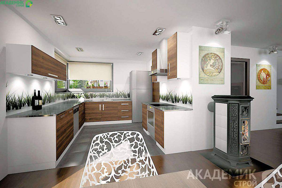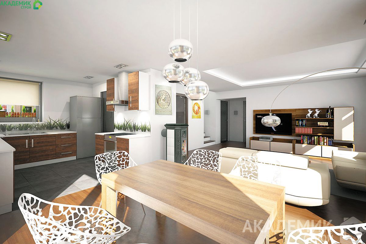 - Первый этаж: обычно включает гостиную зону, кухню, столовую, а также, возможно, рабочий кабинет или гостевую комнату.