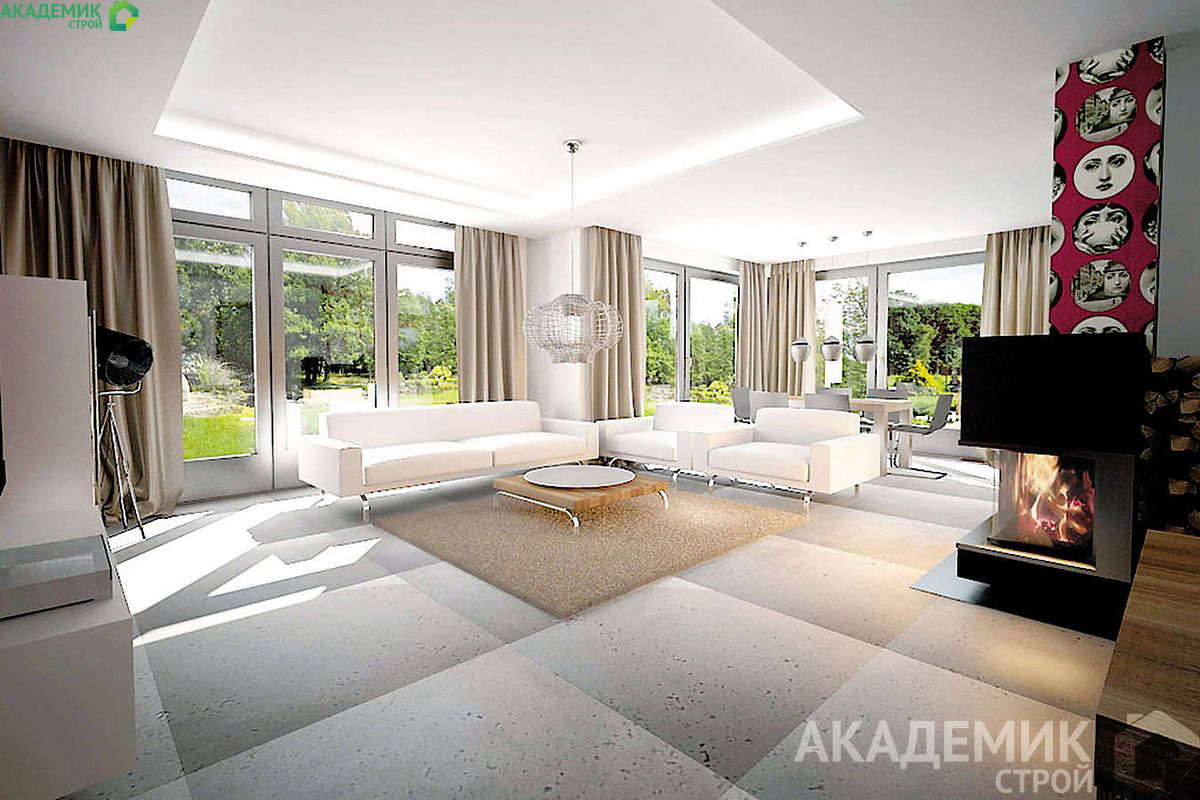 Высота здания составляет 7,91 метра, а высота аттиковой стены — 1,03 метра, что обеспечивает благоприятные пропорции фасада, а также позволяет легко вписать дом в любой стиль и ландшафт.
