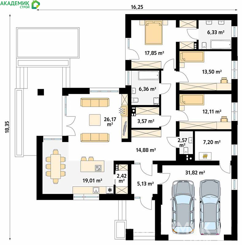 Строительство дома – это серьезный и последовательный процесс, требующий от вас времени и внимания. Но с грамотным проектом и надежным подрядчиком вы сможете наслаждаться уютом и комфортом собственного дома уже очень скоро. И одноэтажный дом 15х18 от "Академик Строй" – это отличный вариант для тех, кто ценит качество, удобство и разумную цену.