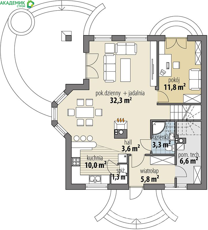 Площадь крыши учитывается при расчете материалов, стоимости и монтаже — "Академик Строй" предлагает оптимальные решения для этого этапа строительства.