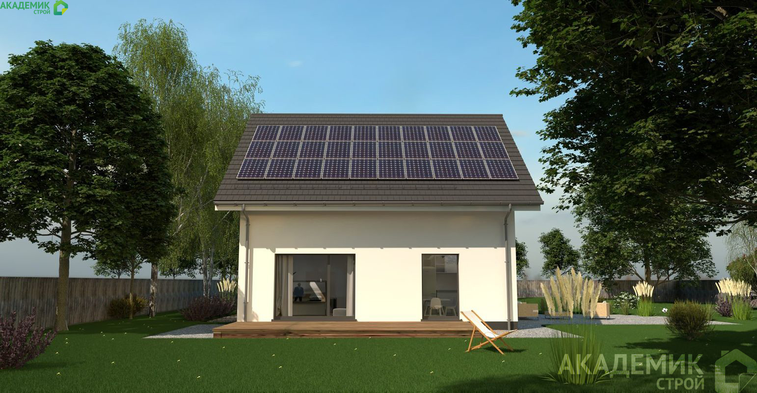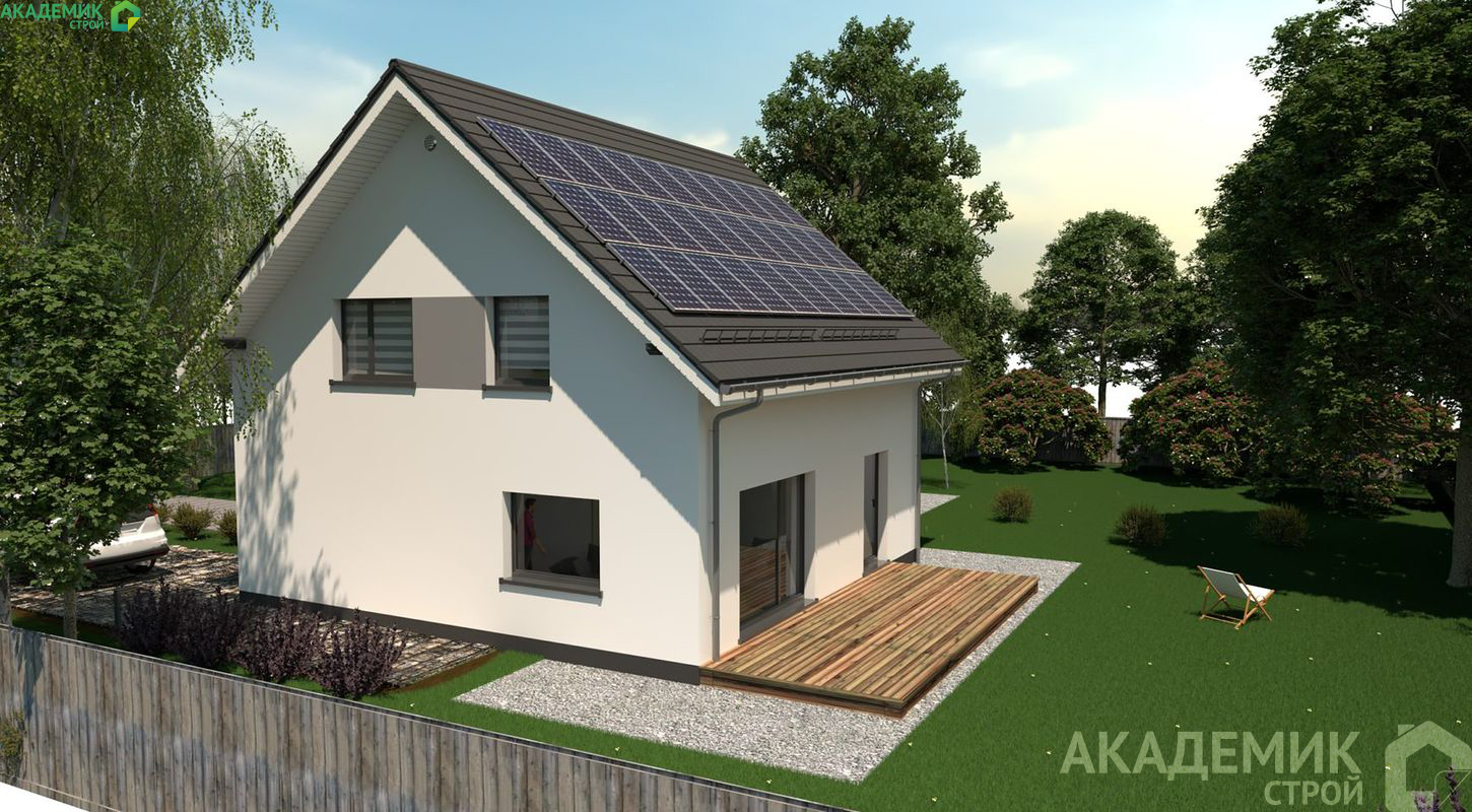 - Современный архитектурный стиль с двускатной кровлей и высотой здания 8,94 м делает дом презентабельным и долговечным.