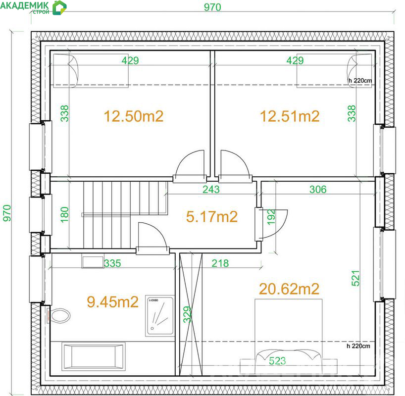 Особое внимание заслуживает двускатная крыша с углом наклона 40°. Этот элемент служит нескольким важным целям: он способствует эффективному отводу осадков, минимизирует нагрузки на конструкцию и создает уютный мансардный объем для дополнительного использования. Кроме того, правильный угол наклона крыши отвечает требованиям климатических условий в регионе эксплуатации, что значительно продлевает срок безремонтной эксплуатации крыши.