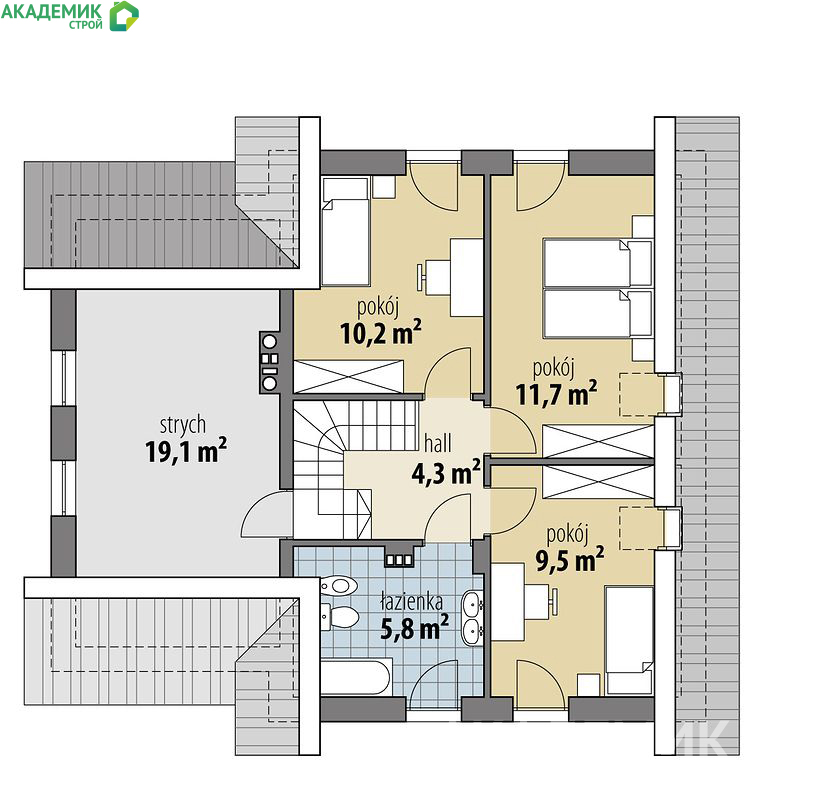 Одним из ключевых преимуществ двухэтажного дома является возможность зонирования внутреннего пространства. В нашем проекте предусмотрено три спальни, что создаёт идеальные условия для семей с детьми, а также для длительных гостей или создания кабинета для работы на втором этаже. Два санузла помогают избежать очередей в утренние часы и создают комфортные условия для всех жителей.