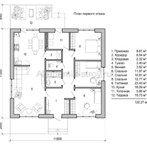 Особенности и функциональность одноэтажного дома площадью 122.27 м²