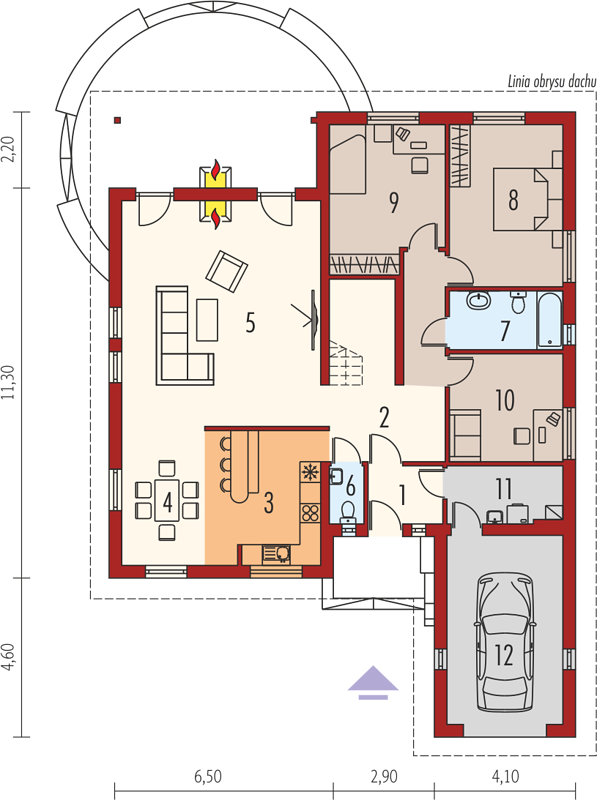 Высота 7,54 м и двускатная крыша с уклоном 30° создают комфортные условия и позволяют сделать второй этаж удобным для жизни. Приятный архитектурный облик одновременно современный и классический.