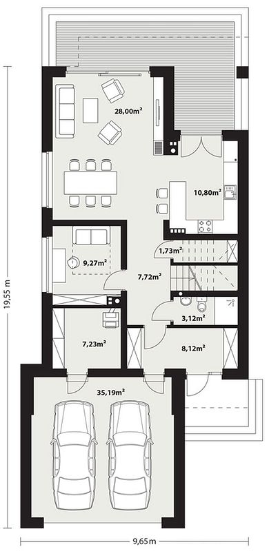 - Минимальные размеры участка для правильного размещения и соблюдения строительных норм — 16 м в ширину и 28,55 м в длину.