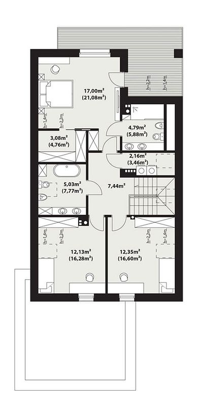 Отсутствие террас и балконов в проекте обусловлено стремлением к упрощению внешнего вида и уменьшению затрат на строительство и обслуживание. Тем не менее, в случае необходимости небольших изменений, например, добавления террасы, проект можно индивидуально адаптировать под запросы заказчика.