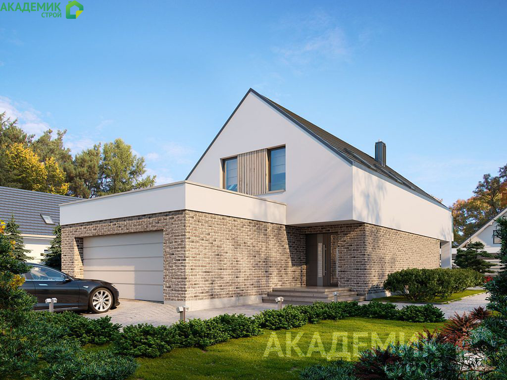 Дом построен с двускатной крышей, которая не только придаёт строению классическую привлекательность, но и обеспечивает отличную функциональность. Такой профиль крыши помогает эффективно отводить осадки и улучшает долговечность конструкции. Высота аттиковой стены составляет 1,07 метра — это оптимальное решение для устройства мансардных окон и увеличения полезного пространства верхнего этажа.