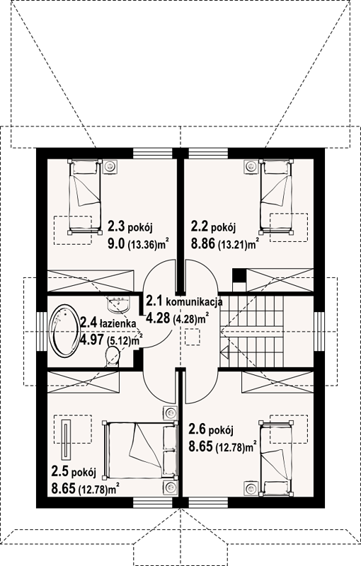 Проект предусматривает более 5 спален, что позволяет разместить комфортно большую семью, включающую родителей, детей и возможность организации домашнего офиса или гостевой комнаты. Такая планировка особенно востребована для семей с детьми, где каждый может иметь собственное пространство для отдыха и работы.
