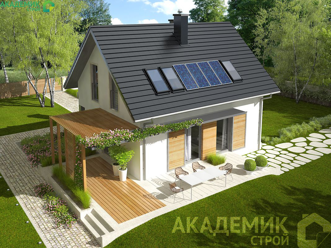 - Возможности для дальнейшего развития. Площадь крыши позволяет разместить солнечные панели или устроить мансарду, а разумная планировка - провести перепланировку при необходимости.