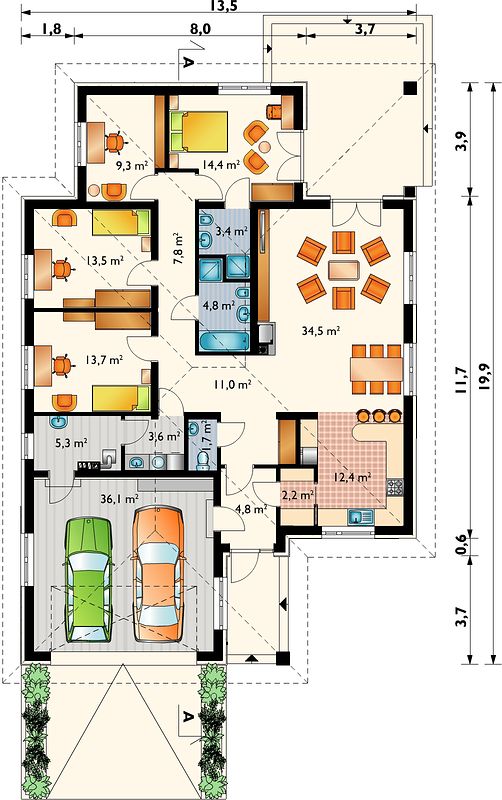 Отсутствие лестниц — это не только безопасность, но и удобство для всех членов семьи, от маленьких детей до пожилых людей. Такой дом позволяет всем легко передвигаться, что особенно важно для здорового образа жизни и предотвращения травм.