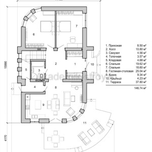Общая длина и ширина здания в 16 и 11 метров соответственно дают возможность оптимально спланировать пространство на каждом этаже. Важно при этом грамотно использовать площадь, чтобы сохранить уют и функциональность помещений, не создавая ощущения громоздкости.