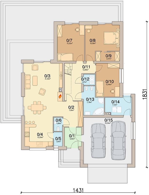 Для многих семей важной характеристикой является количество спален и санузлов. В нашем проекте их соответственно 3 и 2. Это оптимальный вариант для семей с детьми, когда каждый член семьи может иметь свою личную зону, а наличие двух санузлов исключает утренние спешки и неудобства.