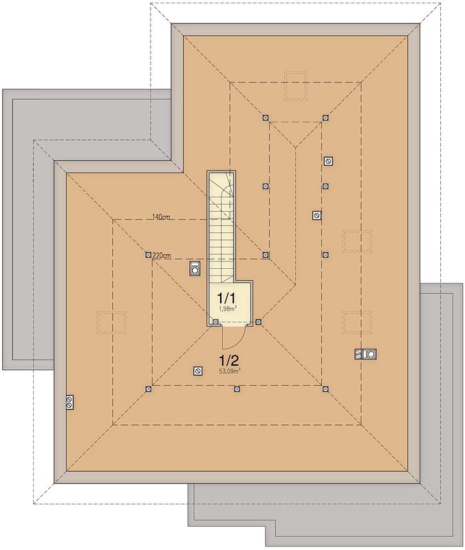 Второй этаж — это место для спален с продуманной организацией двух санузлов. Как правило, спальни располагаются таким образом, чтобы обеспечить максимальную тишину и приватность, вдали от шума общего пространства первого этажа.