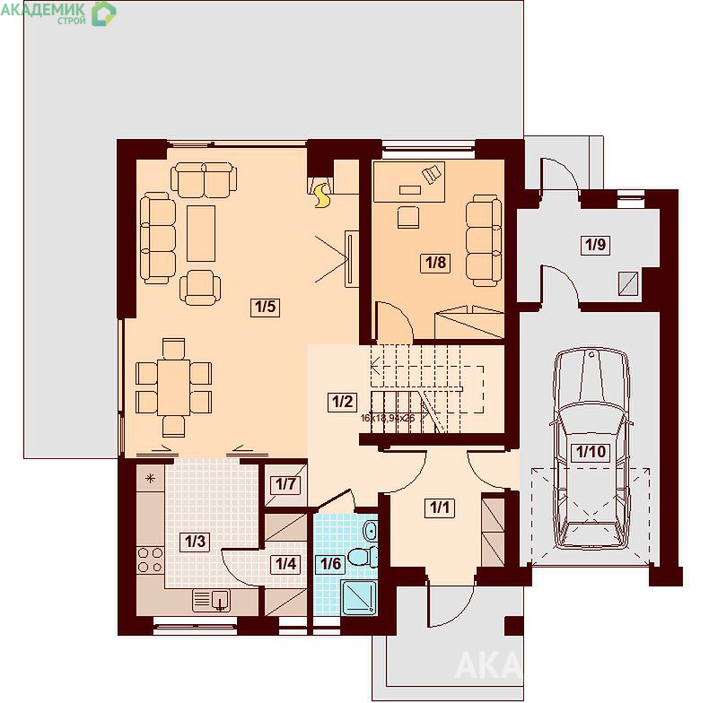 | Минимальные размеры участка 19.04 x 18.54 м |
