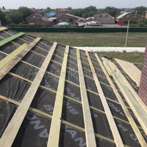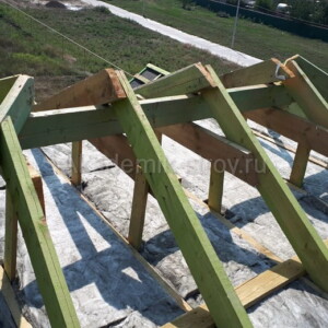 - Кровельные работы. Монтаж стропильной системы, укладка кровли и обеспечение гидроизоляции.
