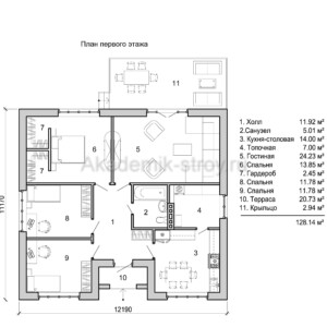 В данной статье мы подробно рассмотрим особенности проекта одноэтажного дома площадью 128.14 м2, расскажем о плюсах одноэтажной архитектуры, а также поделимся рекомендациями по организации пространства с тремя спальнями и одним санузлом. Такой дом идеально подойдет для семьи из 3-4 человек, обеспечивая максимум удобств и гармонии в рамках одного этажа.