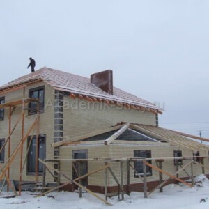 Крышу дома делают, как правило, двускатной или вальмовой, что обеспечивает эффективный сток осадков и долговечность покрытия. Материалы для покрытия – металлочерепица, керамическая или битумная черепица для улучшения эстетики и защиты дома от погодных условий.