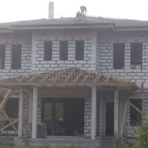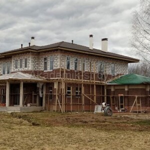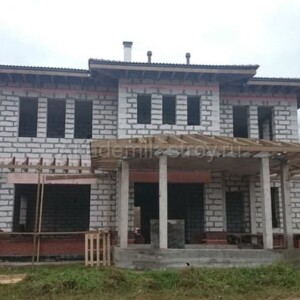 Двухэтажный дом такого размера обычно возводится из таких популярных материалов, как: