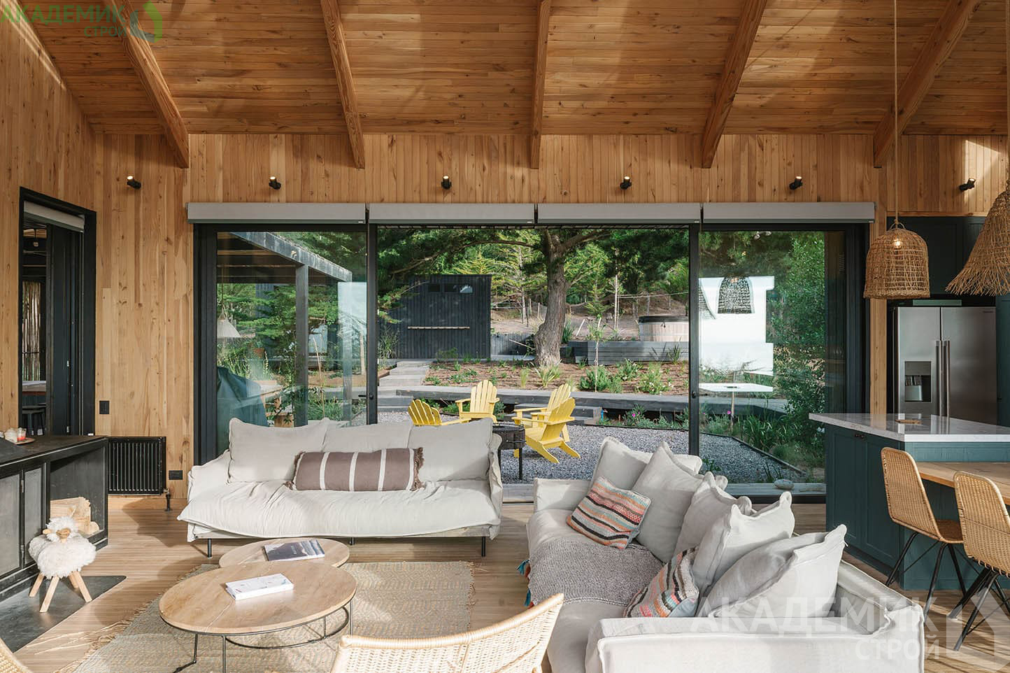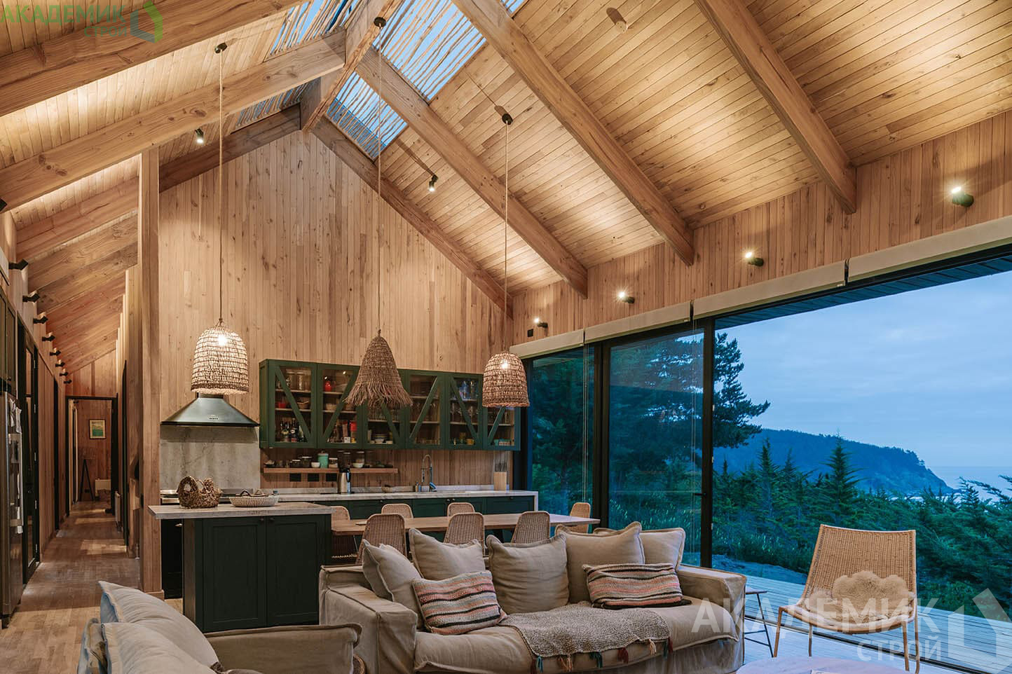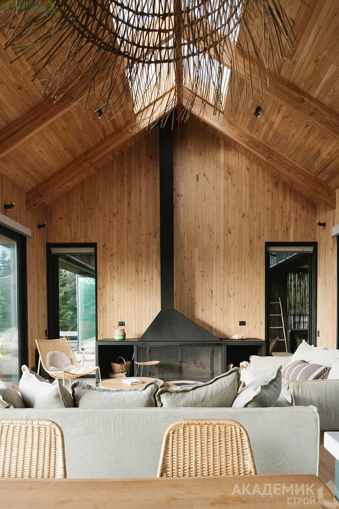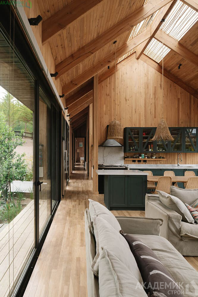 Также в таких домах важно продумать эффективную систему вентиляции, чтобы избежать ощущения затхлости в помещениях, удалённых от внешних стен.