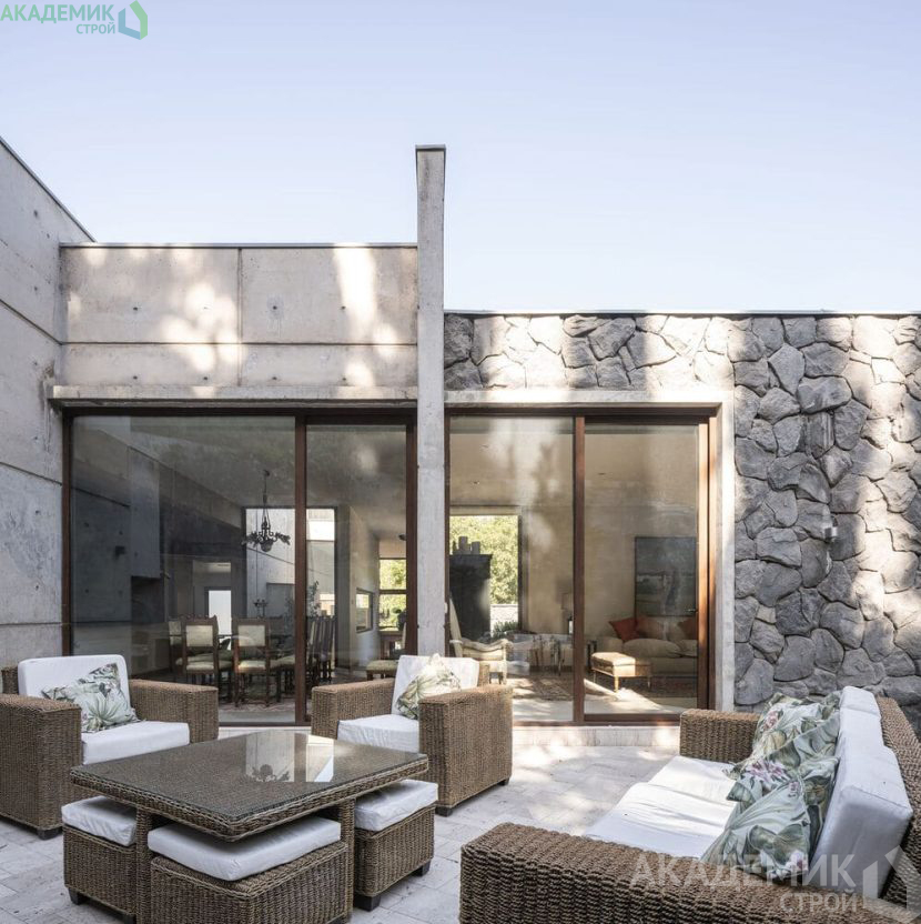 - Одноэтажный дом легко адаптируется под любые архитектурные стили и экстерьерные решения.