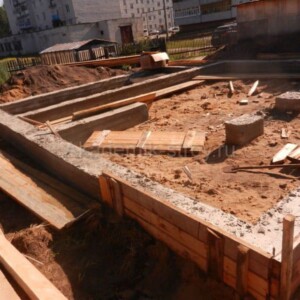 Правильный выбор типа фундамента — залог надежности и долговечности дома. Для дома средней площади и веса, как наш двухэтажный с габаритами 8 на 8 метров, обычно выбирают ленточный или монолитный плитный фундамент.
