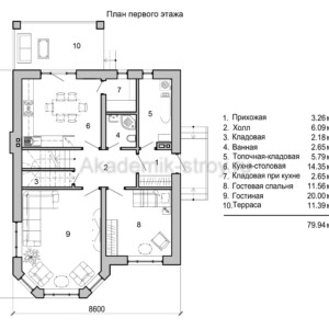 Размеры дома 9 на 11 метров позволяют достаточно легко вписать постройку в различные ландшафтные условия, при этом сохраняя удобные внутренние планировки. Небольшой, но эффективный по площади фундамент снижает затраты на строительство и облегчает процесс возведения дома. Внутренняя организация пространства создана так, чтобы обеспечить максимальную эргономику и удобство использования каждого квадратного метра.